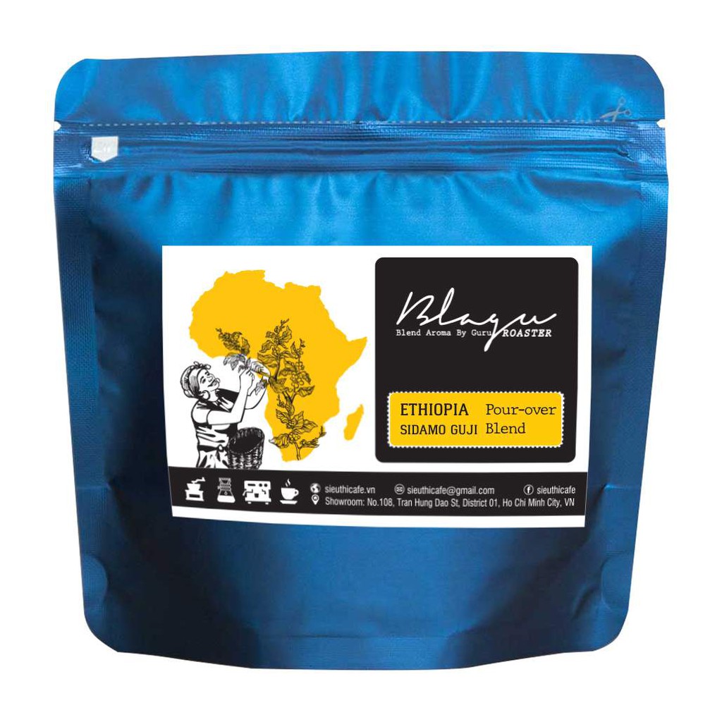 Freeship- CÀ PHÊ BLAGU HẠT ĐÃ RANG, ETHIOPIA SIDAMO GUJI BENSA, LIGHT- MEDIUM ROAST, 100G mua tại đây